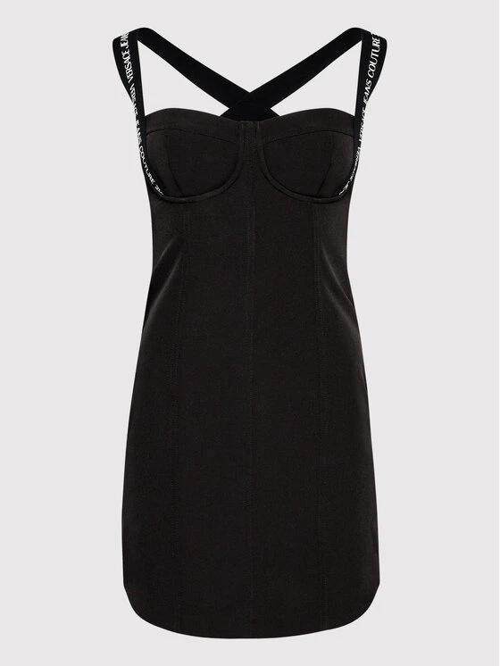 Versace Jeans Couture Γυναίκες Καλοκαιρινά Φορέματα Φόρεμα καλοκαιρινό Cady 73HAO917 Μαύρο Slim Fit