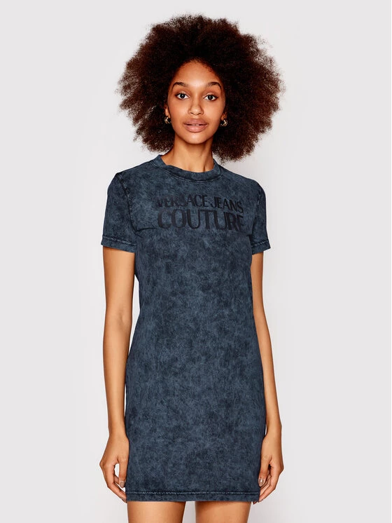 Versace Jeans Couture Γυναίκες Καθημερινά Φορέματα Φόρεμα καθημερινό Logo Crinkle 71HAOP13 Γκρι Regular Fit