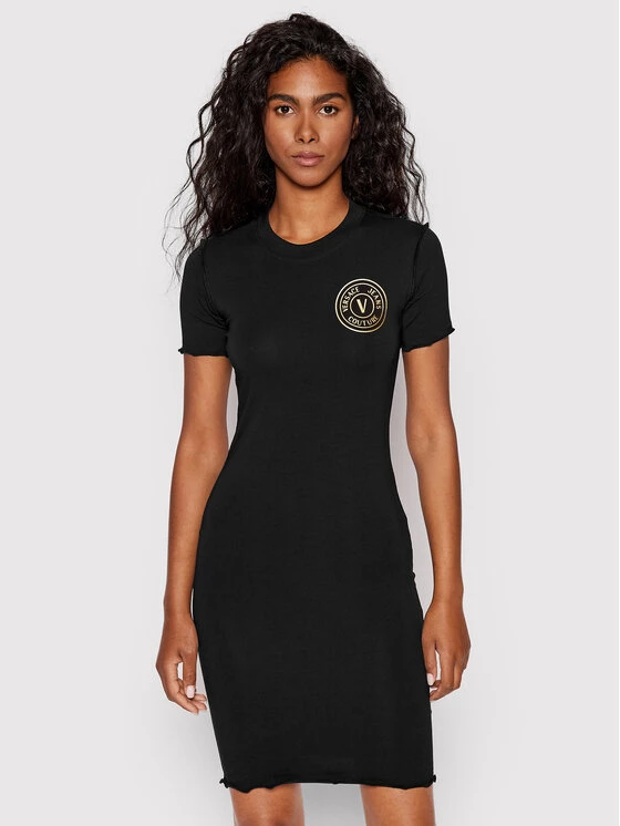 Versace Jeans Couture Γυναίκες Καθημερινά Φορέματα Φόρεμα καθημερινό Vemblem 73HAOT06 Μαύρο Slim Fit