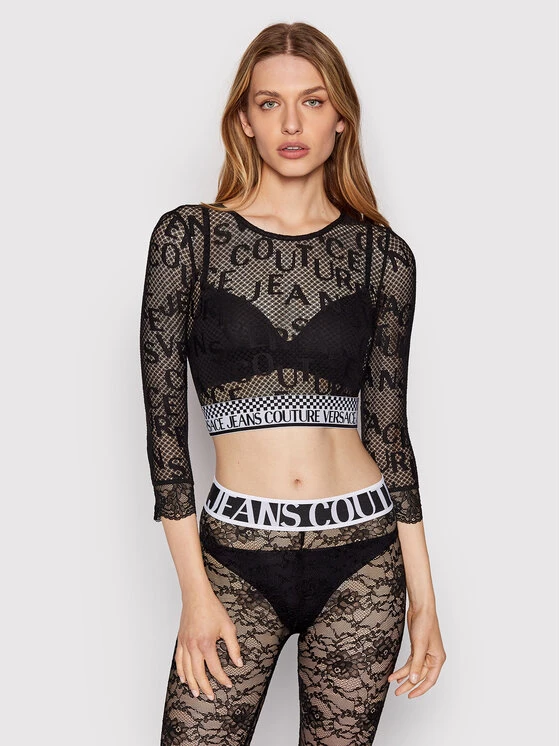 Versace Jeans Couture Γυναίκες Μπλουζάκια Μπλουζάκι Logo 71HAH229 Μαύρο Slim Fit